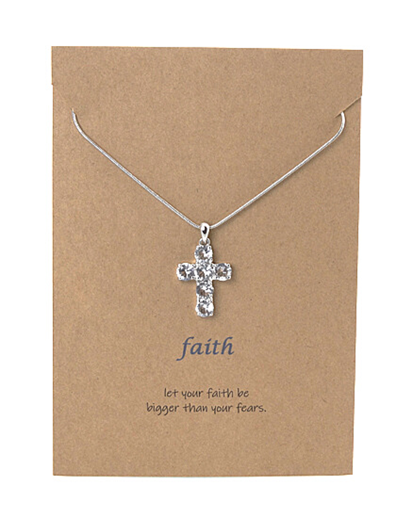 Wenskaart met zilverkleurig kruisje met strass stenen.