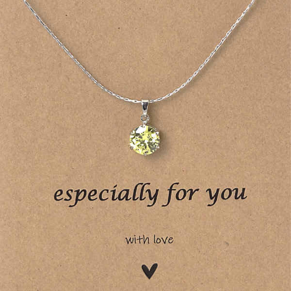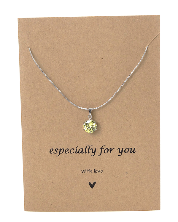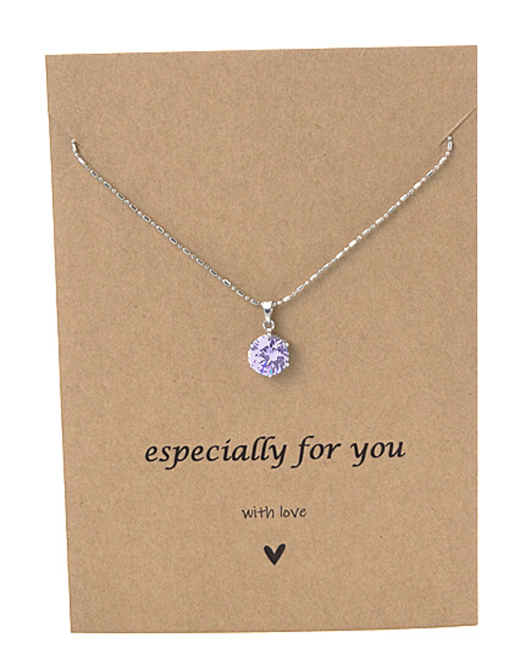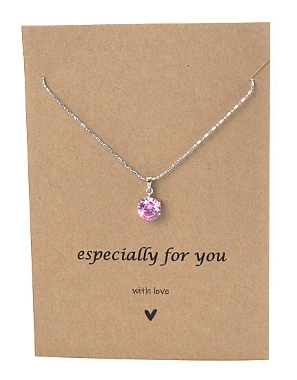 Een speciale gelegenheid vraagt om een speciaal cadeautje. Wenskaart met zilverkleurige hanger met Swarovski steen. Verkrijgbaar in verschillende kleuren.